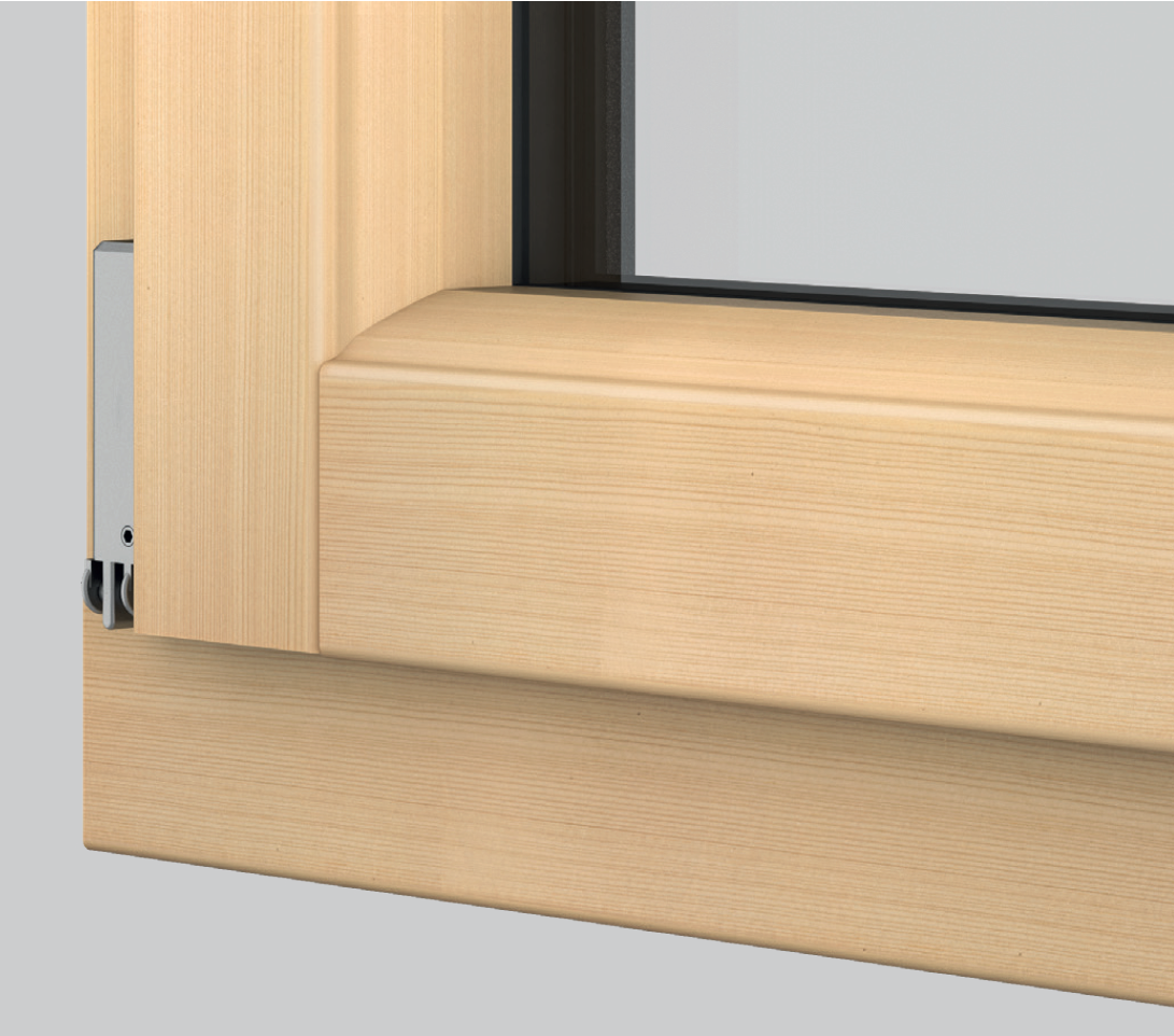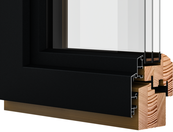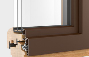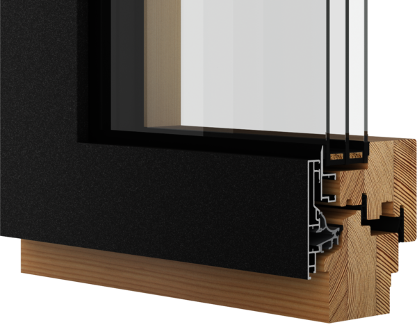 INTEGRA PREMIUM – ist ein Holz-Alu-Fenstersystem mit integrierter Flügelschale. Flügel- und Blendrahmen sind flächenversetzt.